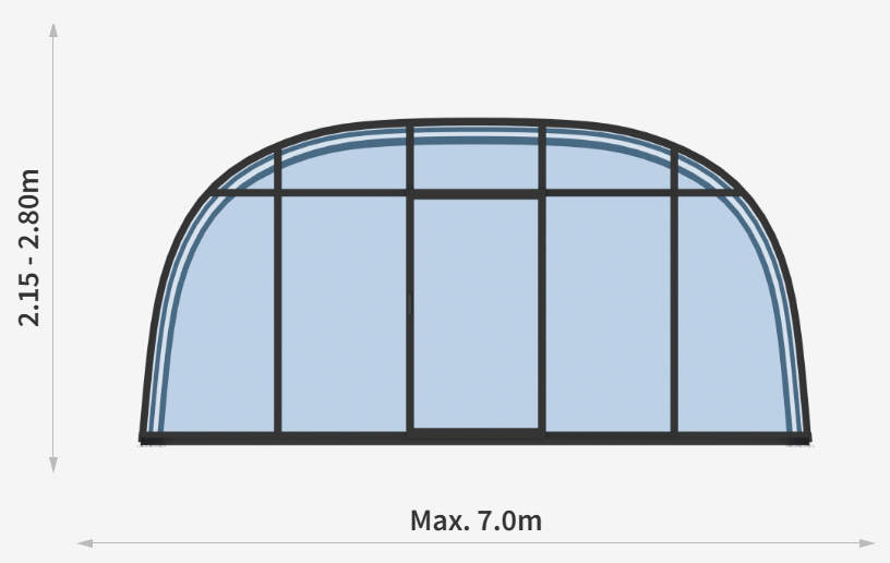 A fedések minimális magassága 2,15 m, maximális magassága pedig 2,80 m lehet.